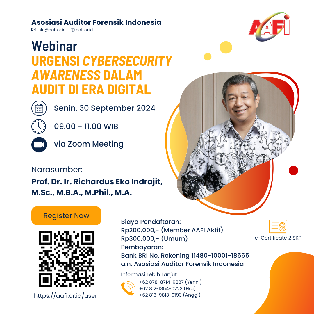 Asosiasi Auditor Forensik Indonesia Sirit (AAFI SIRIT) mengundang Bapak/Ibu dalam Webinar Online dengan Tema: Urgensi Cybersecurity Awareness dalam Audit di Era Digital